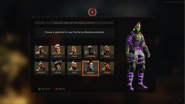 For the Day of the Dead equip, YouTuber PaRaDoX AgonY has a quick video showing you how to actually apply the costume to your selected Specialist. Here are the quick and easy steps: