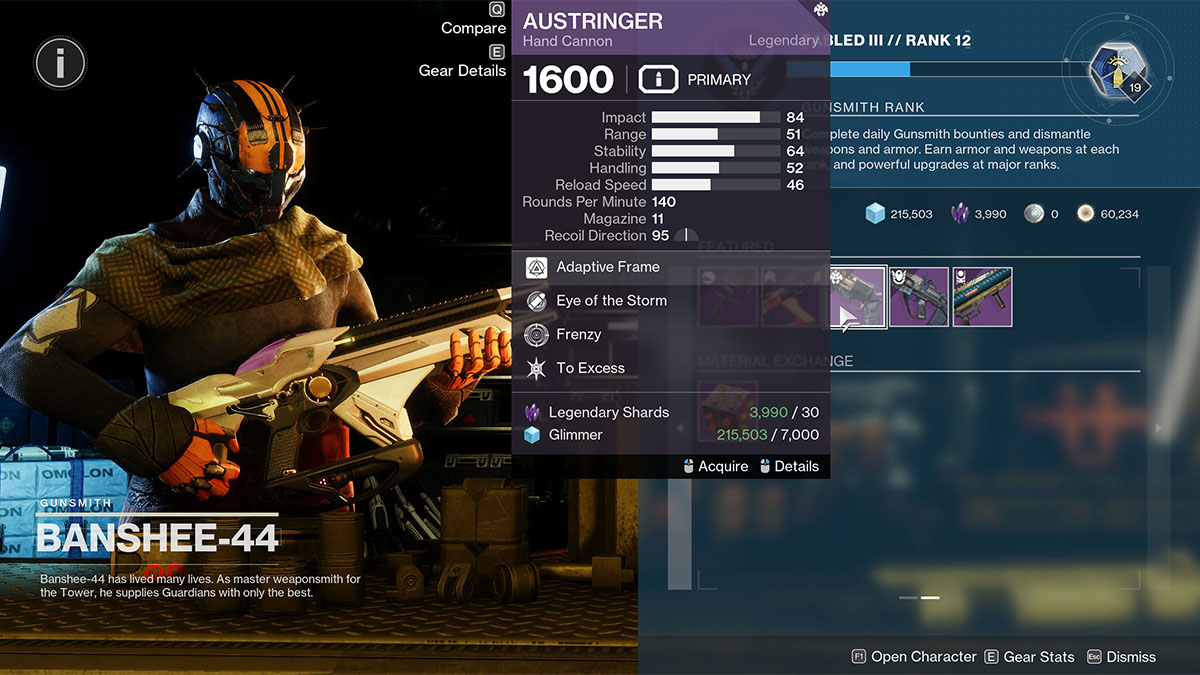 You can still buy every seasonal ritual weapon from the kiosk, and all for the same price: 75,000 Glimmer, two Enhancement Prisms, and one Ascendant Shard. The busted-as-hell weapons like Not Forgotten and Revoker are no exception. We haven’t heard anything about a change to Revoker’s Reversal of Fortune Trait, which refunds one bullet if you miss one.