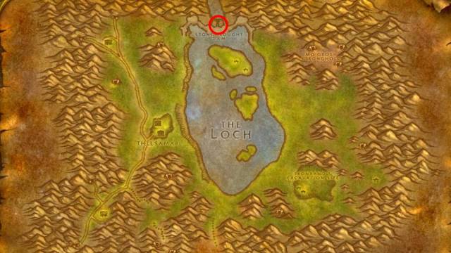 In the northern portion of Loch Modan is Stonewrought Dam separating the river and The Loch. You can walk across Stonewrought Dam from either direction. You’re looking for a ledge off the side facing the river, at about 49, 12, which contains a few key items.
