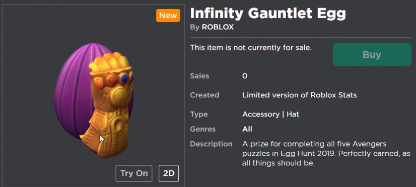 After grabbing the fifth Avengers egg, you are finally rewarded with the Thanos Infinity Gauntlet egg!