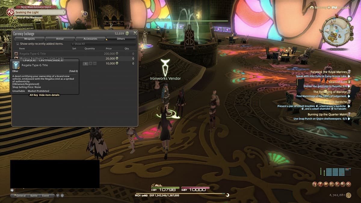 With the return of the FF15 crossover in FF14, the Regalia Type-G mount that carries up to four players is available once more. Grabbing it doesn’t require completing the questline associated with the crossover, however, you need MGP, the currency used at the Gold Saucer. 200,000 MGP, to be exact.