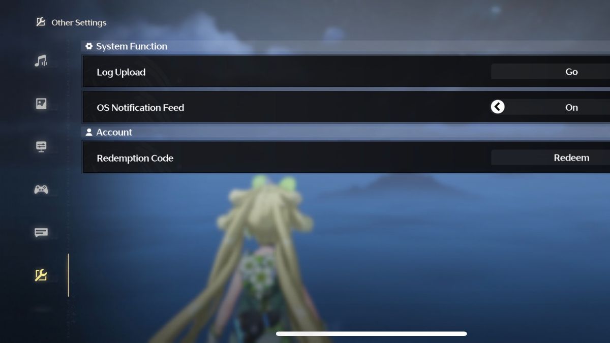 - Head to Settings > Other > Redemption Code.