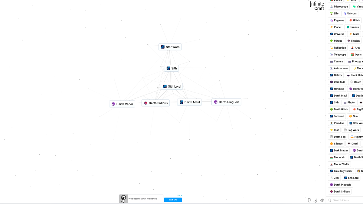 That’s how to make Darth Vader, Darth Maul, Darth Sidious, and Darth Plagueis in Infinite Craft. The only way this game could surprise me more at this point is if I stumble upon a combination for Ulic Qel-Droma or Naga Sadow. That can’t happen, can it?
