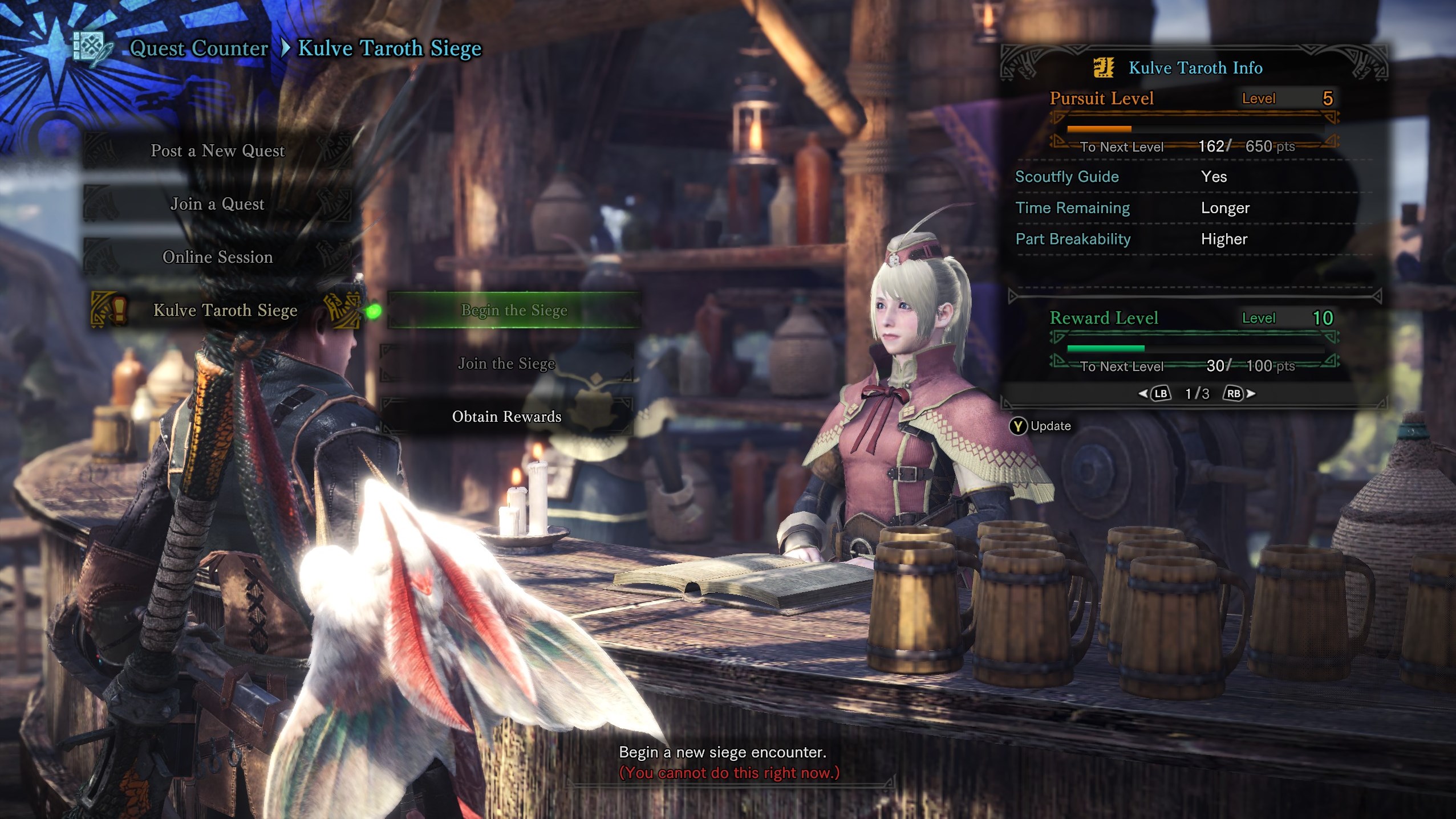 When Kulve Taroth finally lumbers off in shame, you’ll get some materials and trade-in items as usual, but to get the loot you’ve really been working for, there’s one final step to take. Head back to the Celestial Pursuit and talk to the girl in pink once more. Select “claim rewards” under the Kulve Taroth Siege menu—you’ll get some rare materials, with more gold reward slots on offer the higher you managed to drive your reward level.