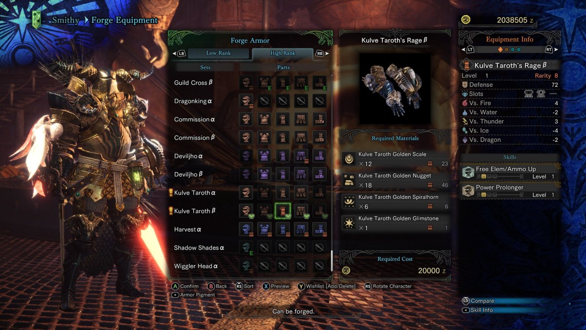 Regular Kulve Taroth armor can be crafted in the workshop and comes in α and β versions, like all other high-level armor sets. Many of its pieces enhance some of the rarer and more useful armor skills, like Critical Boost and Handicraft.