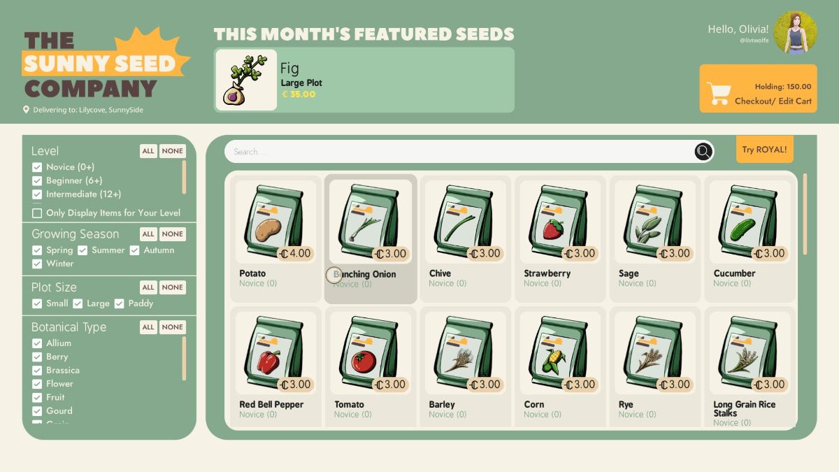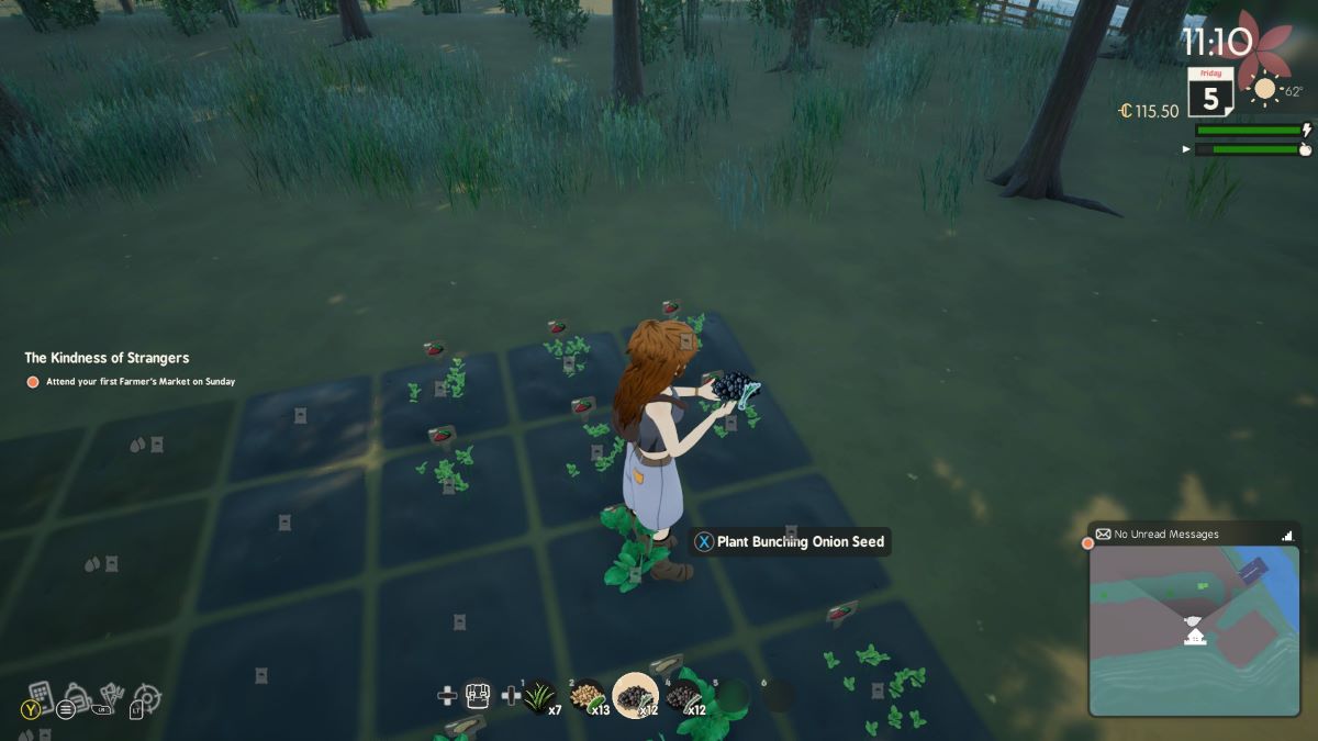 Ordering seeds through the Sunny Seed Company app is simple enough. Once unlocked, you’ll find the app on your phone’s home screen. You can order a pretty extensive variety of plants from the get-go, so you’ll have plenty of options to get your farm going and make some money. I opted for bunching onions, chives, and cucumbers to start since each requires little maintenance. To make the best call, be sure to check seasonal requirements and fertilizing needs before you buy.