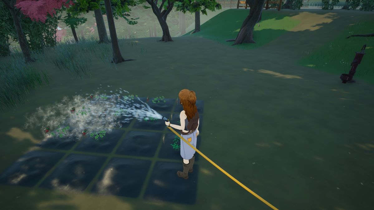 Since there are several ways to access water on your farm in SunnySide, it took me a lot longer to figure out how to water my crops than I’d like to admit. After a bit of trial and error, I realized you can simply grab the hose off the side of the shed and get to work. Fortunately, there isn’t a trick to using it; simply aim and fire. Just make sure each crop has had its fill before moving on. The plants you’ve watered are highlighted in blue, while thirsty plants remain dark.