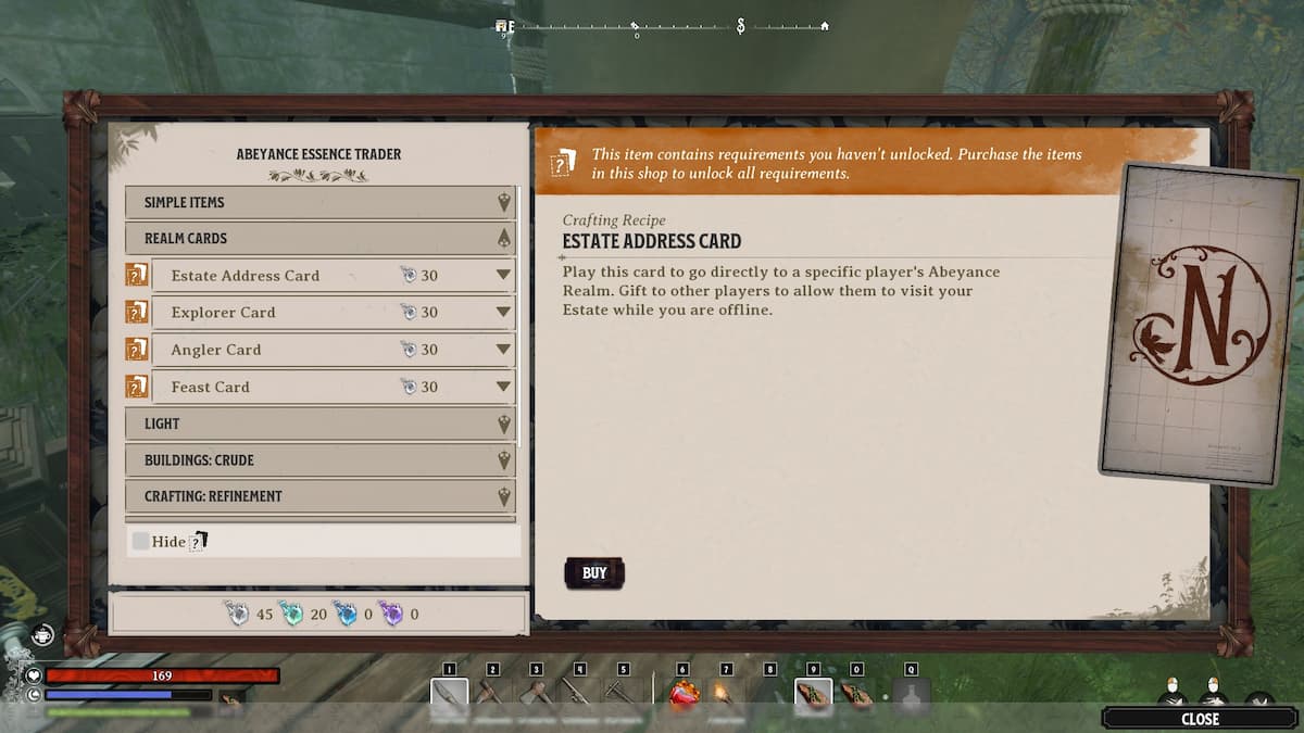 To get the plan for the Estate Address Card, you can find it through Hope Echoes in the Abeyance Realm. It can also be bought for 30 Essence from an Essence Trader.