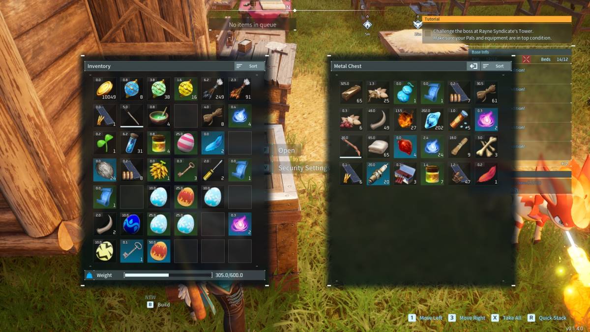 Crafting items with materials in chests is a great quality-of-life feature. But some hidden ones take things a step further. First, I covered how to quickly move items between chests. Now, I’ll tell you how to quick stack items into chests in Palworld.