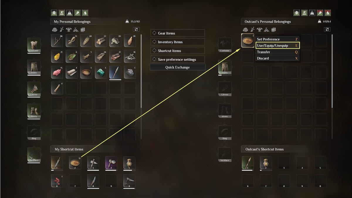Once a character is comatose and deterred, they will remain helpless for a short time. This is when you’ll want to approach them and try to gain their favor. Hold E on them to open their inventories. Then, drag over any liquid food items, like soup or broth (this is the only kind they can have when comatose). When it’s in a slot in their inventory, hover over it and press E on it to make them eat it.