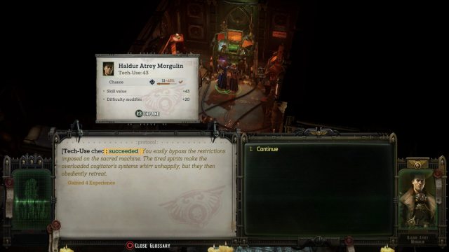 The Eurac V puzzle solution items are found seamlessly by pursuing the “fixing the Elevator Master Rod” quest assigned by Felek. Once you reach the end of the level and interact with the Machine Spirit computer, you’ll be able to access a function that opens all doors. This will open the massive door in the initial combat encounter room. If you fail the puzzle, you can’t retry it without reloading to a previous save, so be sure to save your game.