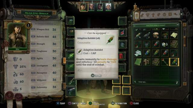 Neither consumable item is crucial or particularly game-breaking, but they’re useful against certain types of enemies. For example, I found the toxic-resistance one neat against enemies like Chaos Spawn, who spew acid on your characters. Either way, that’s how to solve the puzzle on Eurac V in Warhammer 40K Rogue Trader. For more guides on the game, check out our WH40K Rogue Trader guides hub for other puzzle solutions, quest tips, combat help, and more.