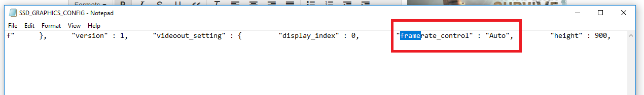 There will be a big long jumble of text all on a single line that isn’t very readable. You are looking for the entry labeled r framerate_control. If you have trouble finding it by scrolling, just hit CTRL+F to bring up the search box and search for “framerate” to jump right to the entry.