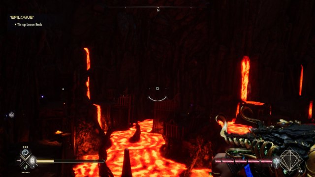 Next was to go to the opposite end of the spectrum: Mount Dresnyr. It takes place in a dreary lava-filled mountain that’s filled with dark caves and bright light sources. The default settings result in some parts looking so dark that you can’t always tell what’s in front of you. This is especially problematic when it comes to combat.