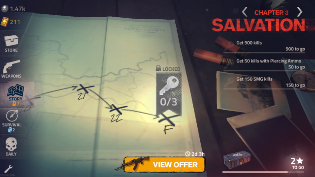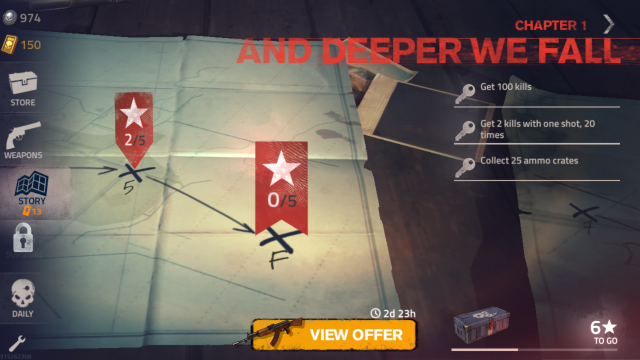 Into the Dead 2‘s Story Mode sends you sprinting through seven chapters of zombies in hopes that you’ll eventually reunite with your family. However, there are plenty of roadblocks along the way. You can’t just blitz through chapter after chapter.