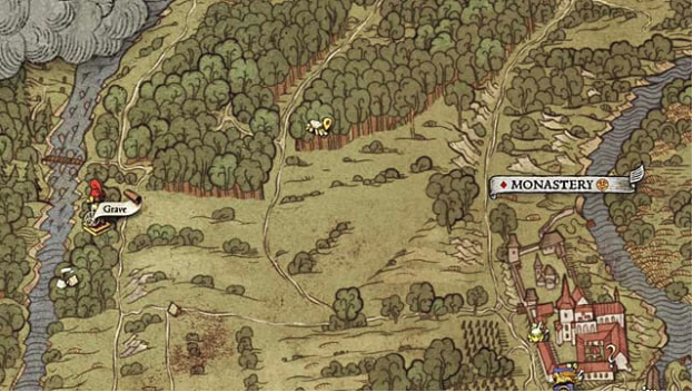 The river south of the Monastery accommodates a small island. Make your way there and dig up a grave for a sack of loot.