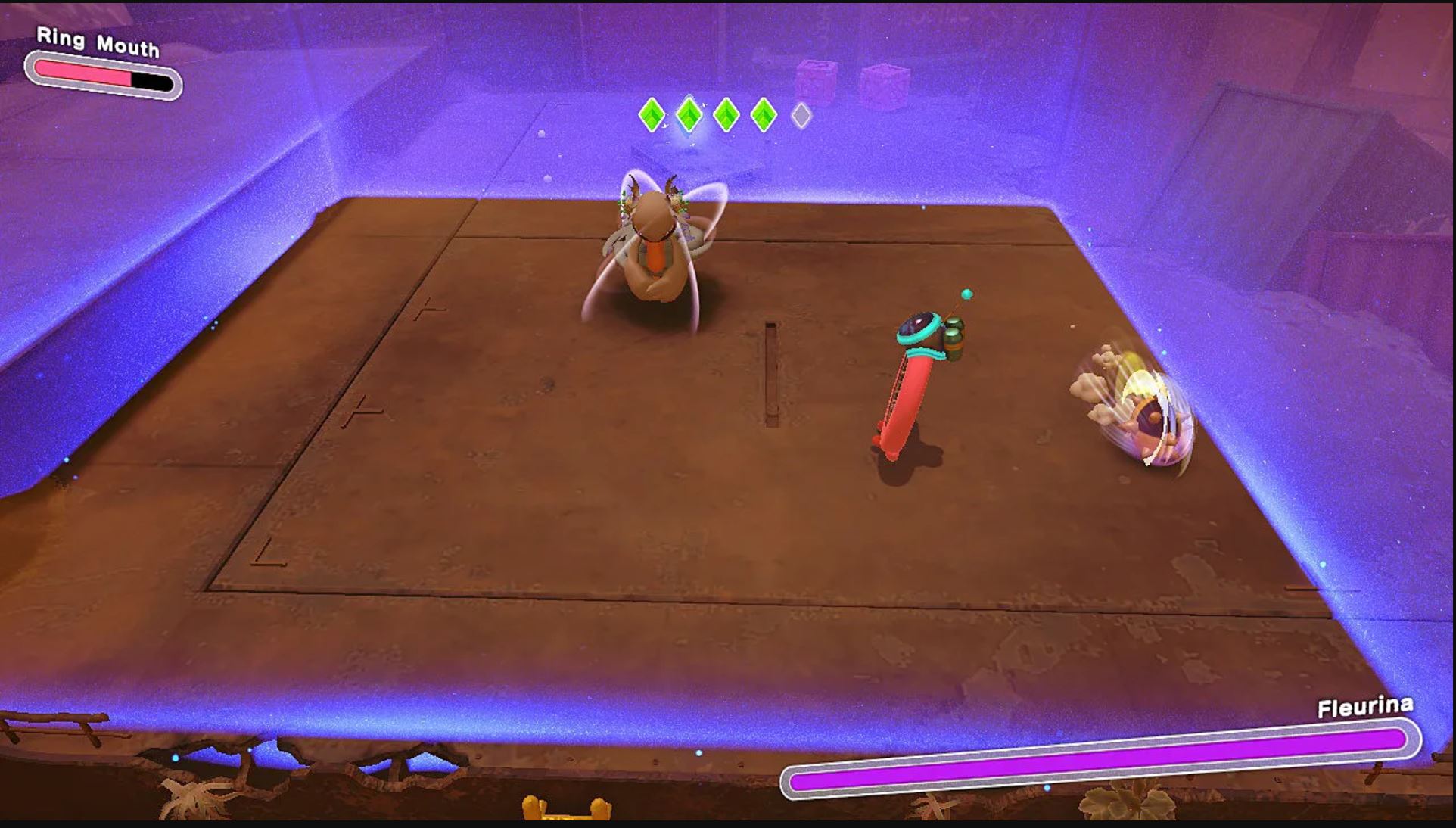 You’ll need Ring Mouth to get a couple of other Star Bits in the area where you fight Fleurina. The trick for this Hidden Mission is to not use the ladder up to the ship. Instead, walk around the perimeter to get on top of some rubble. From here you can jump to the ship. Using Ring Mouth mode the fight is a literal breeze
