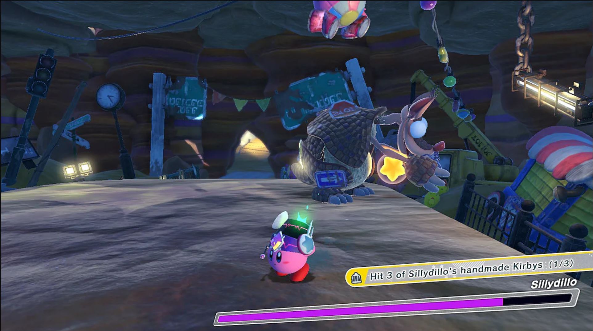 In Sillydillo’s second phase, it will summon handmade (not so epic) yarn Kirby’s to fight against you. Destroying three of these will be easy as long as you focus on them and not Sillydillo during this part of the fight. At least until you see the Hidden Mission is complete.
