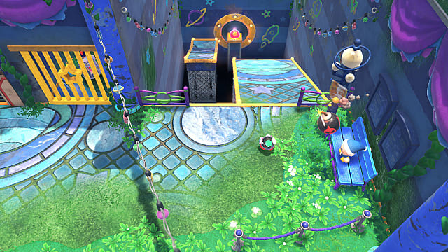 In the area after the race, you’ll need to roll a bomb down a ramp to hit a blue switch. Doing so will open up a challenge area. This room contains a trickier bomb and switch puzzle you must solve by timing your bomb rolls safely from one platform to the next. This will detonate on the switch, opening up the gate where the second one Waddle Dee can be found.