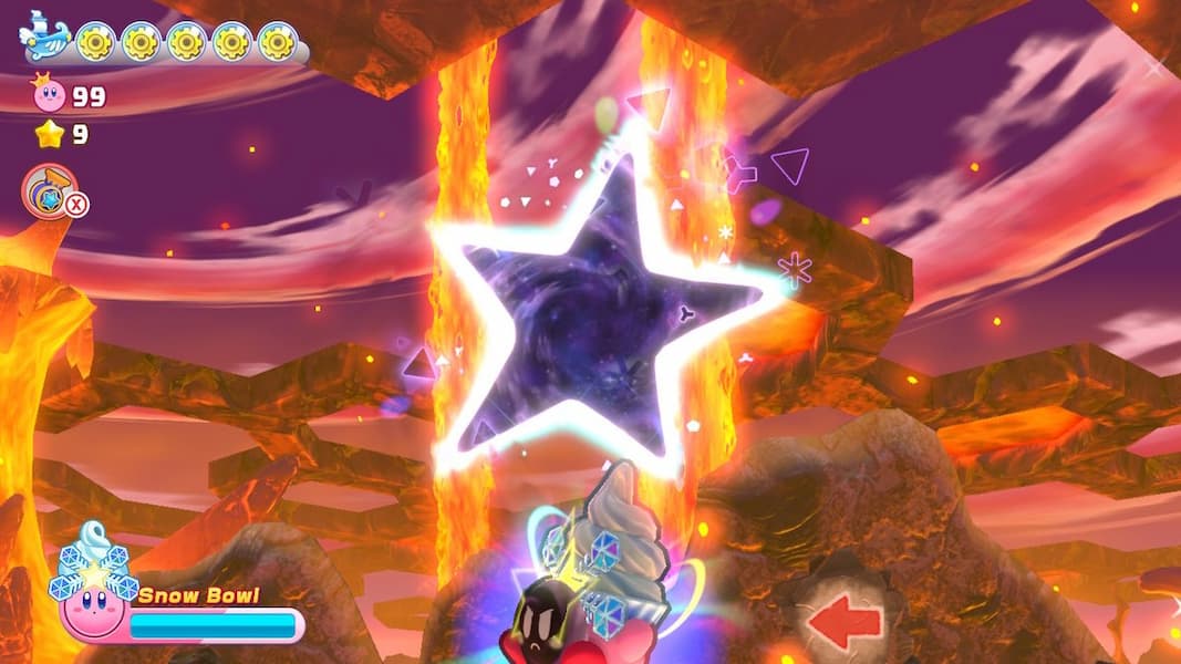 The next sphere requires the ninja ability. There will be some on the wall near a gap in lava so be sure to steal the ability. Then make your way through the gap and enter the red star door.