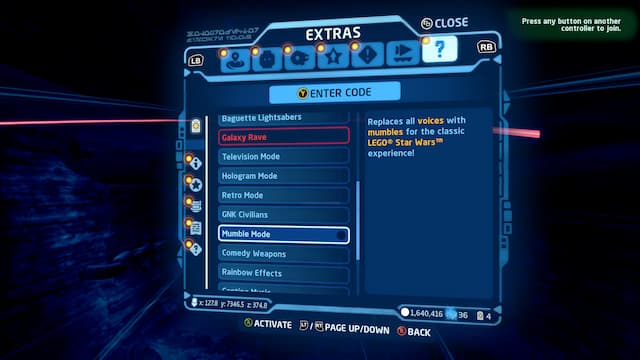 LEGO Star Wars: The Skywalker Saga has a huge list of gameplay and accessibility options. Your first instinct might be to look through these menus to find the option for Mumble Mode. In actuality, it’s buried in an extras menu, only accessible in-game.