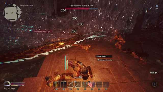Once slain, you’ll be able to cross the water without fear. No more waves of enemies will appear. The water remains dark and you don’t have a chance to loot anything that may have fallen into the depths, but you can reach the other side without hassle.