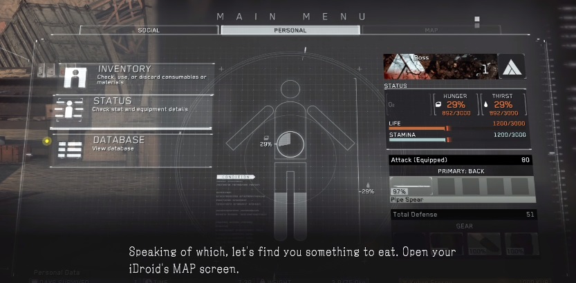 Not sure where you are in the story? Access your iDroid and pull up the map panel to see your current chapter. After getting access to the Hanging Pot, building a Canteen lets you keep a steady supply of water in storage. Don’t put any infected water in there, though, as the only way to drain it out is to drink it all!