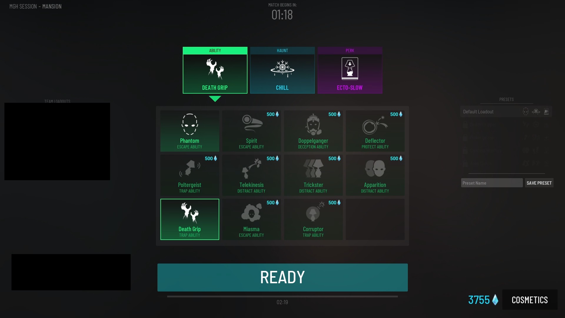 Death Grip is my favorite ability out of the bunch. Placing it ahead of time means that you can drop it in a narrow hallway or small area. This can trick hunters into believing that a ghost is nearby, allowing you to ambush them from another direction or just have them waste time, testing more props for possession. Every second counts when you’re counting down to midnight for that supernatural power-up.