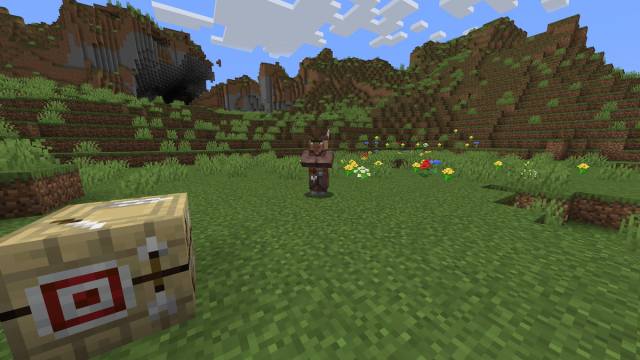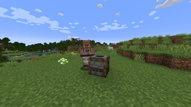 Finally, we have the Weaponsmith, which trades for a few damage-dealing items and uses a Grindstone. Enchanted swords and axes will be the standout things to buy from them. Their brown aprons are similar to a Toolsmith’s although they further stand out with black gloves and an eyepatch.