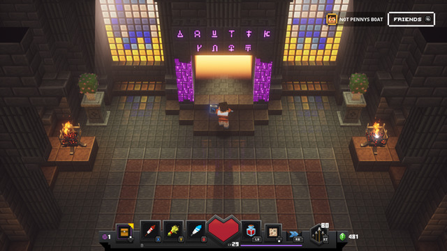 You can now lower the bridge for easier access in the future and head inside. Once inside, you’ll find what we’re guessing are developer portraits along the walls, and one portrait of a dog, whom we do not expect contributed directly to the creation of Minecraft Dungeons, but we could be wrong.