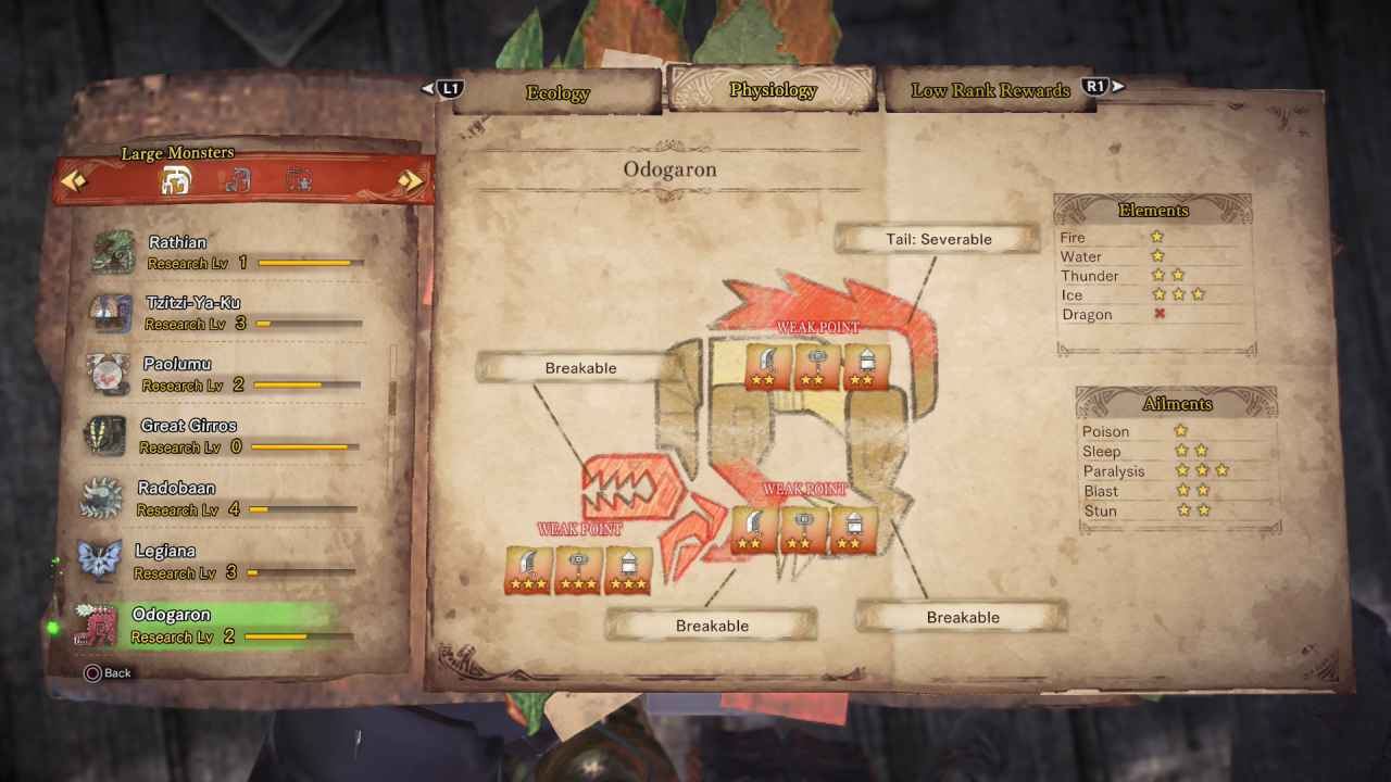 Odogaron is also susceptible to the Paralysis effect, so be sure to use it as well. You can then focus on his head and front claws, or if you’re behind him, then focus on his tail, which can also be severed.