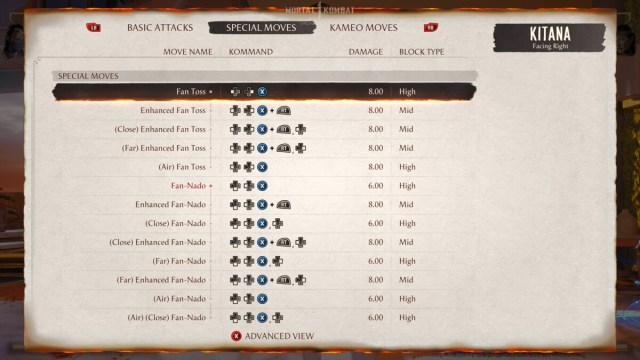- For example, Kitana’s Enhanced Fan Toss is back + forward + Square/X + R2/RT.