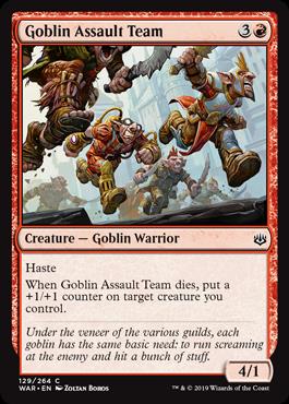 Lastly, you could spice up your deck with such hyper-aggressive card like Goblin Assault Team, and deal another four points of damage out of nowhere.