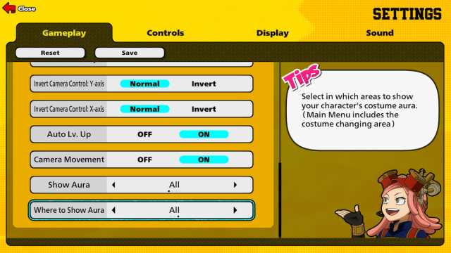 Now that you have an Aura equipped, you might be wondering why it goes away when you start a match. By default, MHUR’s settings only show your auras in the main lobby and the costume changing area. If you want to show off the effect on the battlefield, follow these steps to change your Aura settings: