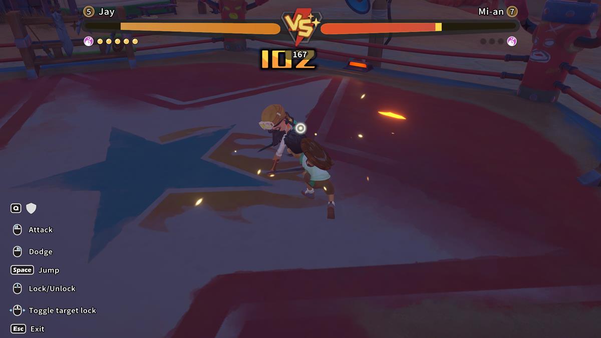 To win sparring matches in My Time at Sandrock, you need to deftly dodge or block your opponent’s attacks, then break their guard to deal more damage. This particular gameplay mechanic is unlocked early on in the campaign once you meet Pen, the self-proclaimed hero and protector of the village. From that point onward, you should see the sparring option when talking to certain NPCs.