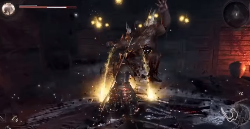To whittle down his health there is a specific pattern that works much better than any other. Dodge around and behind him just as he starts to lunge and is about to strike, then get off two katana strokes and quickly move away before he whirls his giant balls around for a strike.