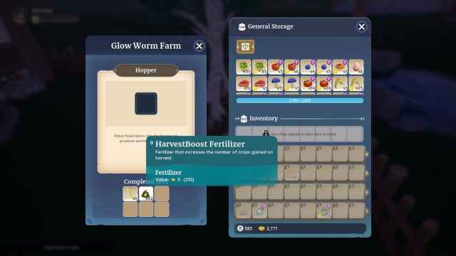 Glow Worm Farms also have two possible fertilizers that can be crafted depending on what is put in.