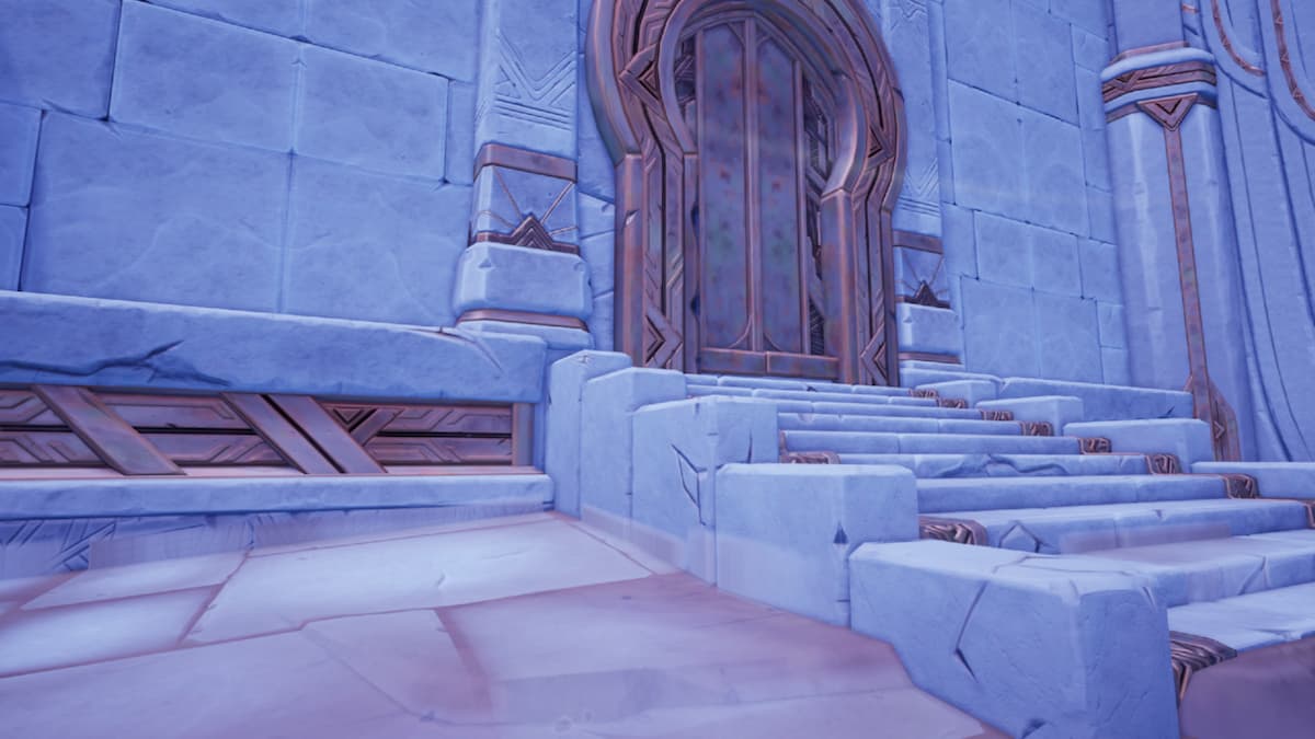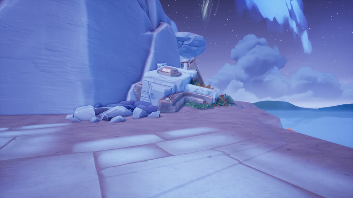 Next, on the Main Island, you want to climb up the large, central square building. Located on the southern side, across from an empty courtyard space, you’ll find the tablet. It’s on the left side of the staircase, closer to the door.