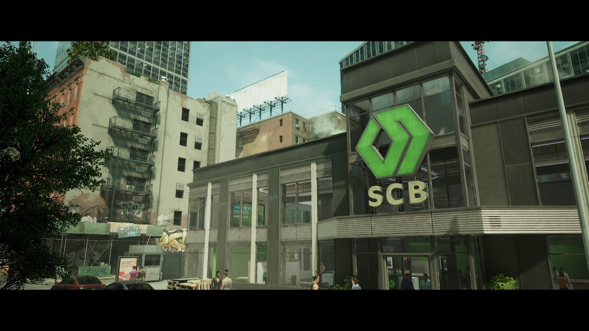 The first step will be to get into the bank and the best method is to go through the roof. Walk around the left side of the building and through the parking lot. In the back, you’ll see a fence that you can lockpick. Make sure not to perform this action in front of the guard in the parking lot or the other guard who patrols the back of the building.