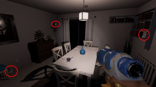 You can find two Phasmophobia Christmas event 2023 snowmen hanging out high up in the kitchen.