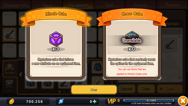 While in Ereve, you’ll want to go ahead and swap out your gear. You should have a new weapon and new armor from quest rewards. (Remember, you do have to be Level 8). You can also take this time to infuse the new equipment using Miracle Cubes if you have any. Each upgrade will be random, but you’ll get bonus stats on anything you apply them to.