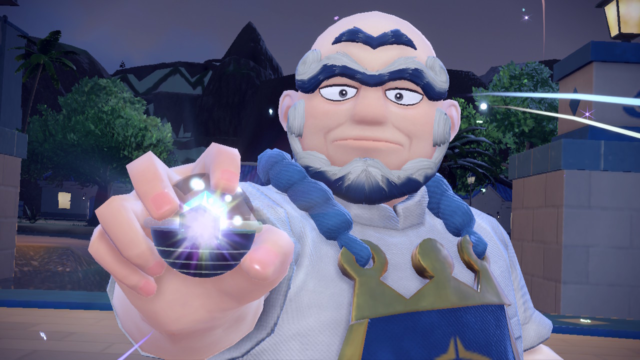 Don’t let Larry’s unassuming appearance fool you. His team can put on some serious hurt if you let them. His ace, in particular, a level 36 Staraptor, can take out every Pokemon you have if you give it a chance. Worse, you don’t want to apply any status effects to it, as its Facade move doubles in power while it’s Poisoned, Burned, or Paralyzed, so bring a Fighting-type like Lucario, Pawmo, or Annihilape as a counter.