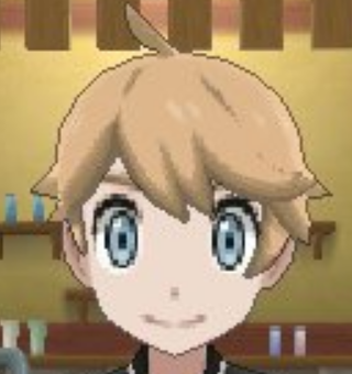 the ash brown hair color option in Pokemon Ultra Sun/Moon Male Pokemon trainer with caramel blond hair Platinum blond hair on a male in Pokemon Ultra Sun/Moon