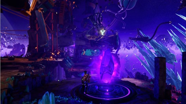 Acquiring the first golden bolt of Torren IV is just a short skate away from the landing platform. Following the path from your ship, you’ll have a quick fight with some Amoeboid. Rather than taking the sling towards town, veer right.