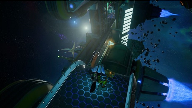 When you return, exit your ship on the landing platform and look for a wall you can run along on your left. Using the Phantom Dash, run along the wall and land on the platform immediately below you, where you’ll find the final Gold Bolt for this area.