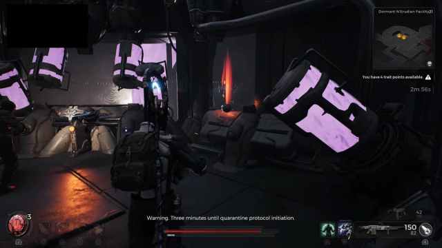 Once in the Dormant N’Erudian Facility, you’ll need to open a locked door with the Biome-Control Glyph. For me, this was near the World Stone, but it may be in a different place for you. Proceed through the dungeon until you reach an area where you enter a Quarantine Protocol. You’ll have six minutes to make it through the area.