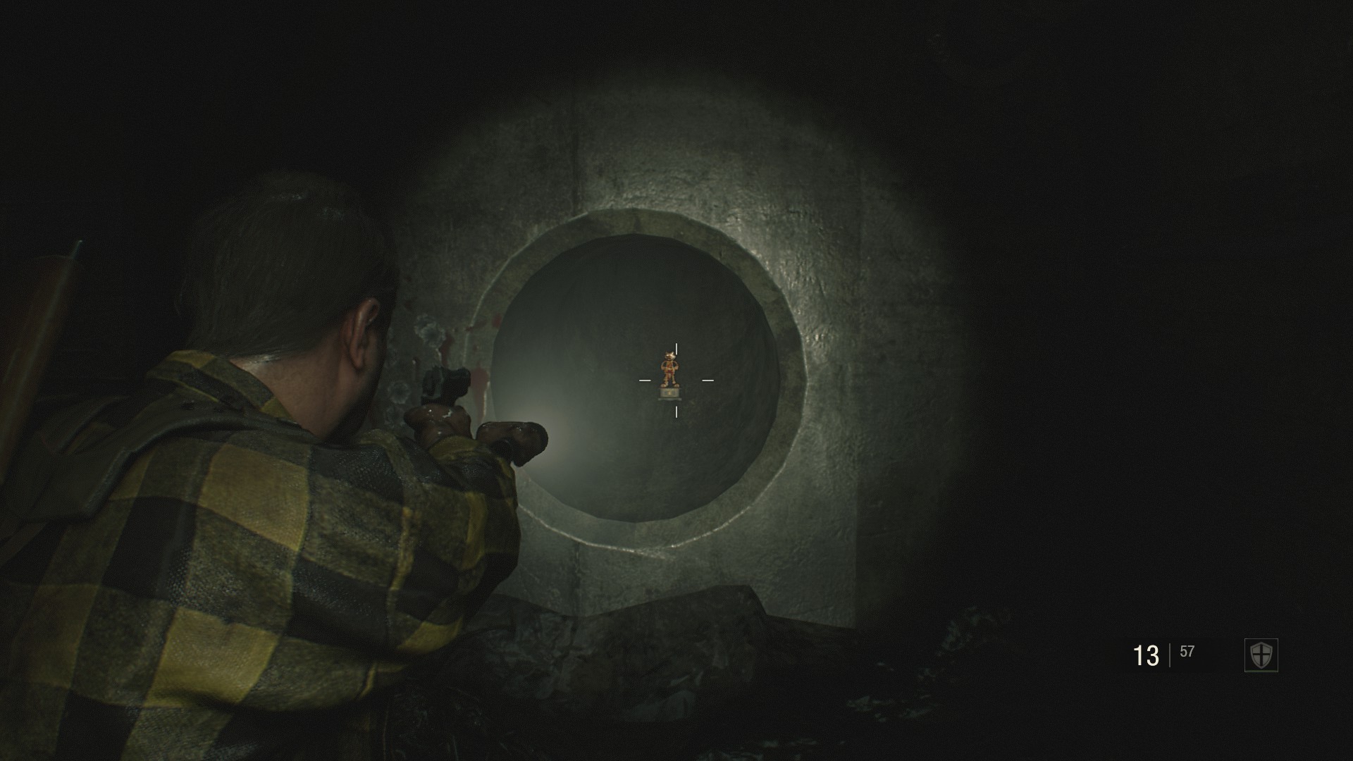 If you turn right to go along the harder of the two paths, once you get past the three G-Mutants in the water and the Ivy at the end of the hall, you can find this statue waiting inside one of the pipes.