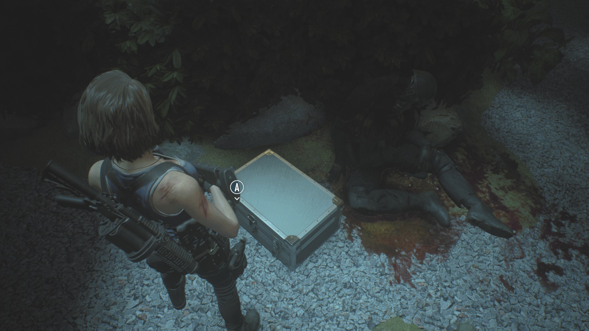 Jill, however, will slide right through it, where you can reach another broken window. Jump through it to find a dead Umbrella mercenary and a briefcase, which contains the Lightning Hawk.