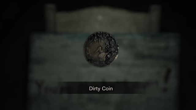 Keep the coin and wait for the release of Resident Evil 7: Biohazard on January 24, 2017. In the main game you will be able to find a birdcage with tons of upgrades. This cage can only be opened with the help of the Dirty Coin.