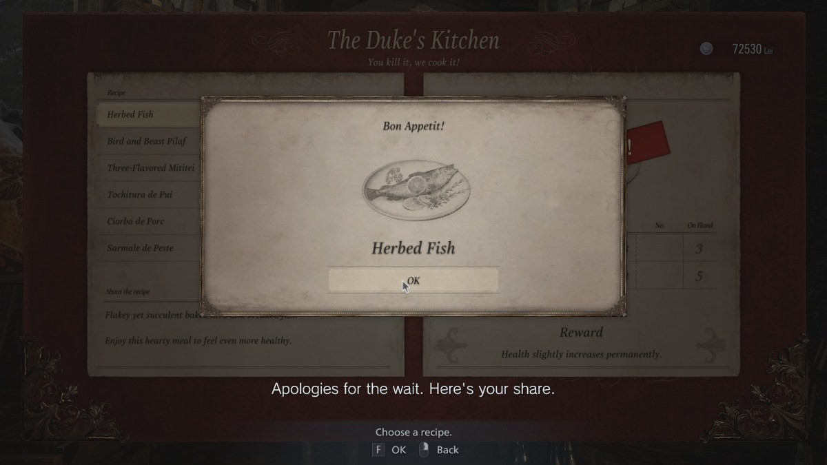 One of the least well-understood parts of Resident Evil Village, at time of writing, is the cooking upgrades. You can deliver meat, fish, and poultry to the Duke, the game’s lovable merchant, in exchange for getting a helping of tasty local cuisine.